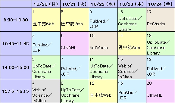 図書館では、2025年 (令和7年) 10月20日 (月)~24日 (金) に、以下の内容で医学文献情報のデータベース講習会を開催します。